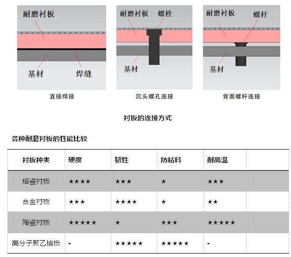 熔瓷襯板所有產(chǎn)品均可焊接,現(xiàn)場切割比較困難,不建議切割!安裝方式可采用: ①直接焊接②沉孔預制